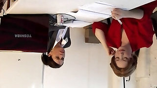 LEZ BE BAD - Phat Ass White Girl Skylar Snow Rails Big Naturals Coworker Angel Youngs' Xxl Strap-On In Elevator