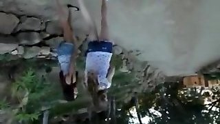 Unable to control themselves the black-haired lesbians stop their yoga lesson to scissor inwards the house