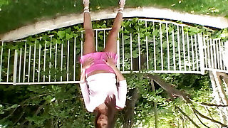 Unable to control themselves the black-haired lesbians stop their yoga lesson to scissor inwards the house