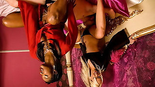 Sluggish mature girl/girl whore Daisey Lee seduced young and tight shaped girl Hetty for nasty pussy slurping action.