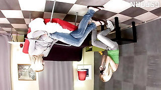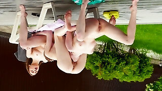 Girl-on-girl squirt, lesbian feet and strapon. Two nymphos with their pussy spewed out with squirt splashes