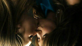 Couple of slim blondie lesbo girls are licking and shagging each other on the grass-plat near the house