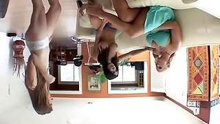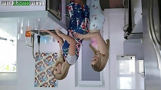 couple of stepsisters are alone in the living room and they get horny and commence having girl/girl fuck-fest