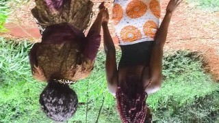 Chubby ebony floozie Mi$$ $uckable invites young chocolate angel Vanity Cruz to drink from her furry bowl