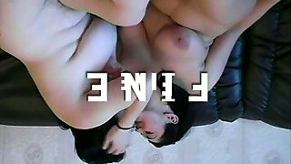 Tattooed emo lesbian gets horny while watching porn and then she smashes her girlfriend on the sofa