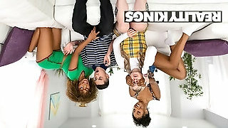Two bombshell lesbian damsels Octavia Crimson and Rissa May indulge in a passionate sex with licking and fingering