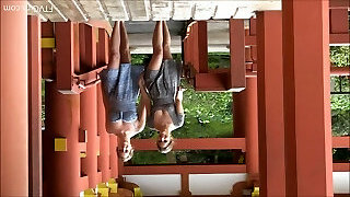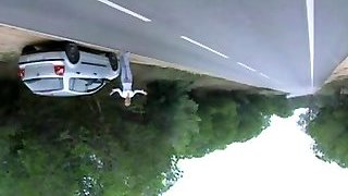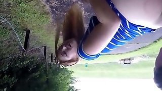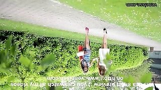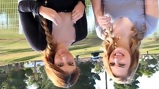 Rita and Madeline amateur girl/girl couple walking and flashing pussy outdoors