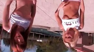 By the pool the beautiful whore friends enjoy sex fucktoys