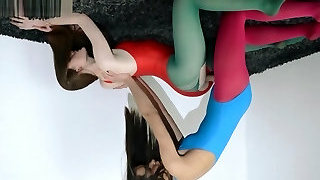 Pair of flexible lesbian chicks giving each other the vagina licking