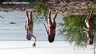 The game night gets steamy as the girl-on-girl sandy-haired lures the blonde and they start kissing and fingering
