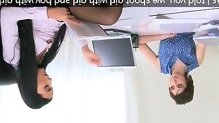 Stylish casting lesbians finger fuck in office