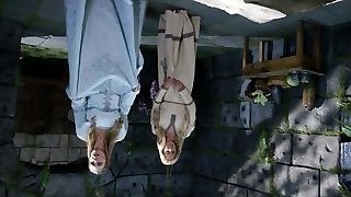 Lesbo domina smacks and gets pussy munched by bound maid outdoors
