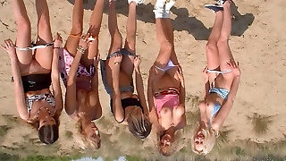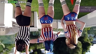 Ginger-haired Abigaiil Morris is having some insane fun in the sun shaking her big tits and backside by the pool, curvy brunette Sammy Tor