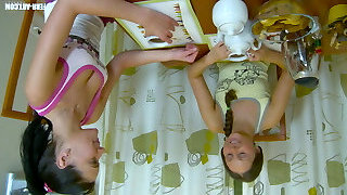 Sexy Teenagers Eufrat and Hana Black in Stockings and Underwear at Lesbian Sex